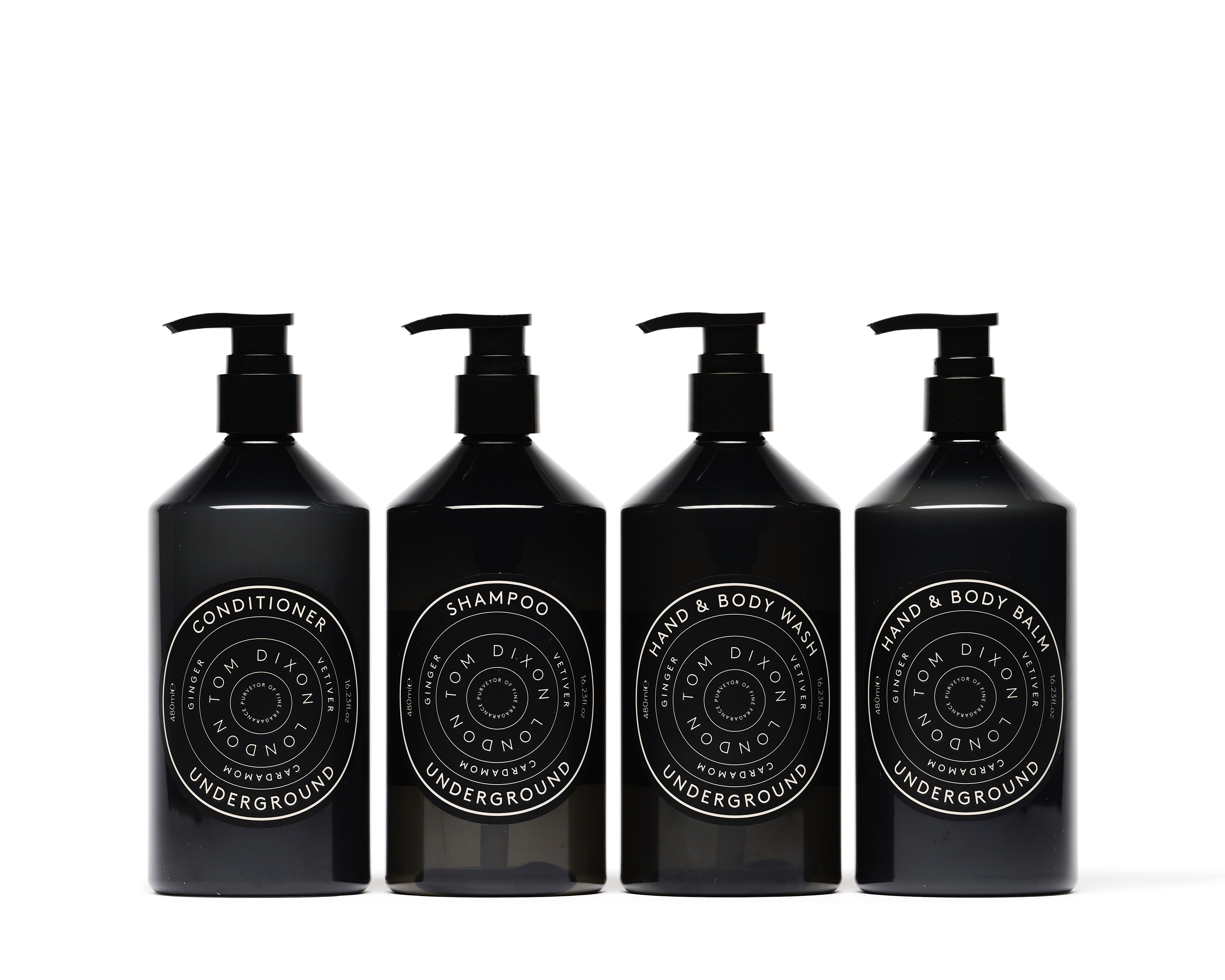 With expertise in designing remarkable interiors for hotels, Tom Dixon has brought his style and flair to a range of amenities for the first time, featuring his unique Underground fragrance, an evocative blend of ginger, cardamom and vetiver.